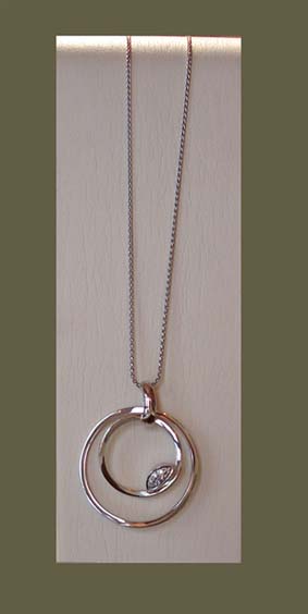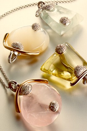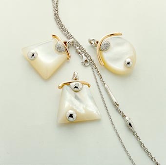 Différentes formes de pendentifs et de finition en bicolore, pavés diamants.