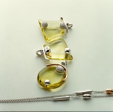 collier or gris avec pendentif "Talento" en quartz lemon, or gris, or jaune et brillants.